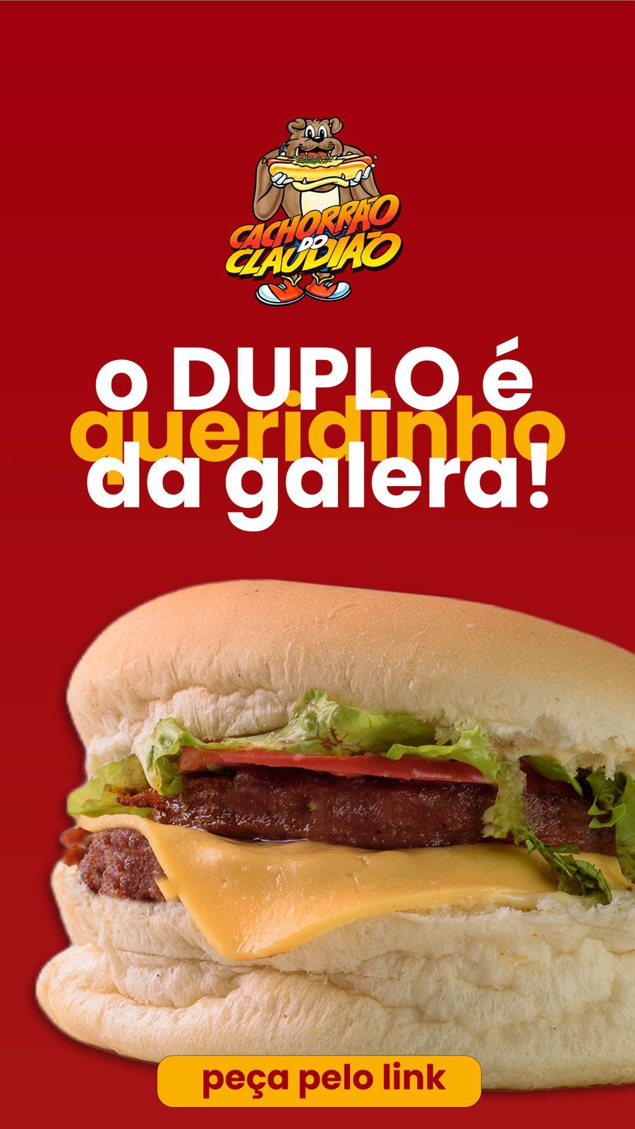 | Pao, 01 hamburguer, queijo prato, presunto, alface, tomate, maionese, catchup, ovo frito, milho e ervilha |
